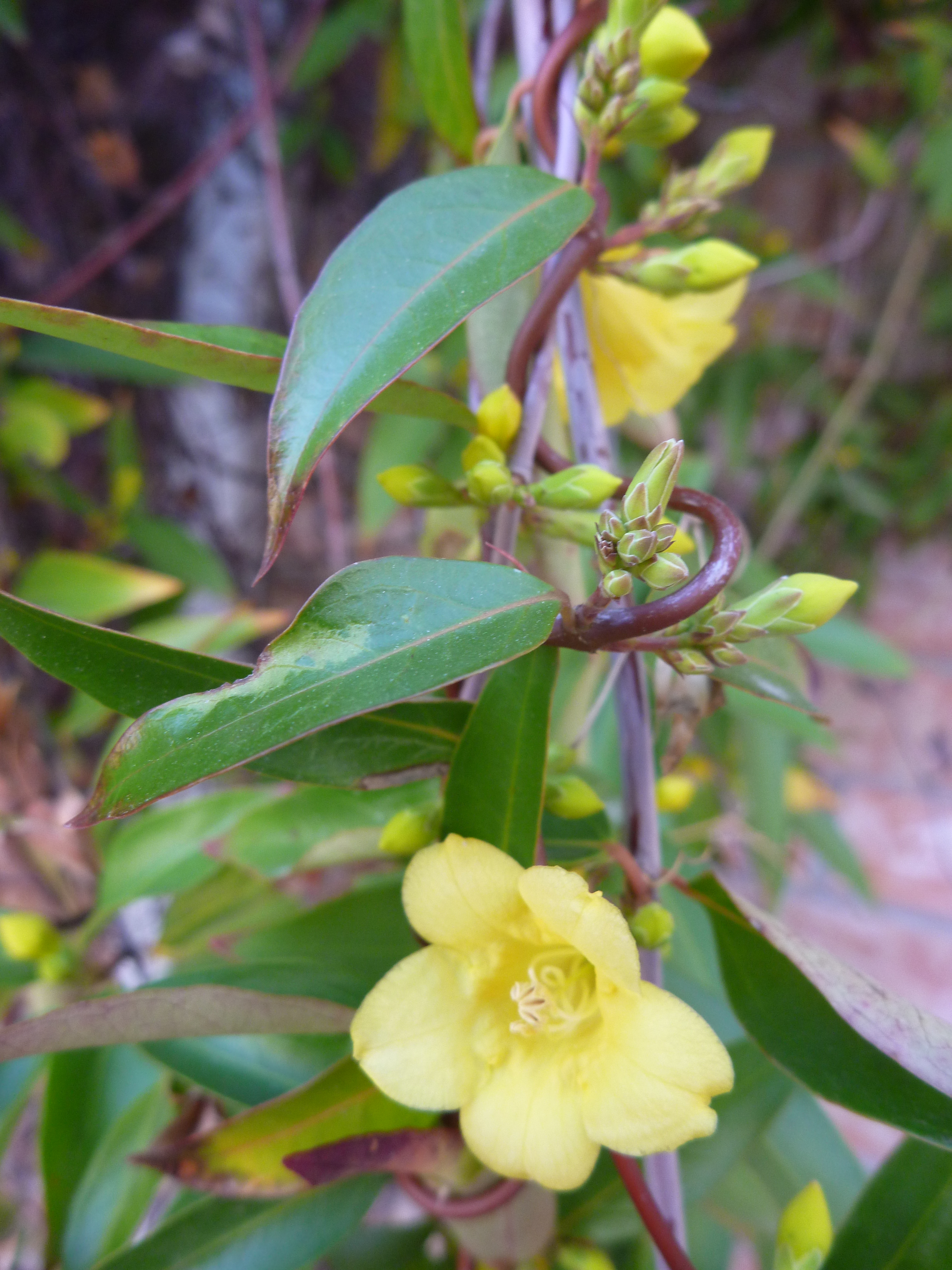 * Carolina Jessamine – I like this vine because it is evergreen and it heralds spring with its cheery, sweet-scented blossoms in late winter year after year.