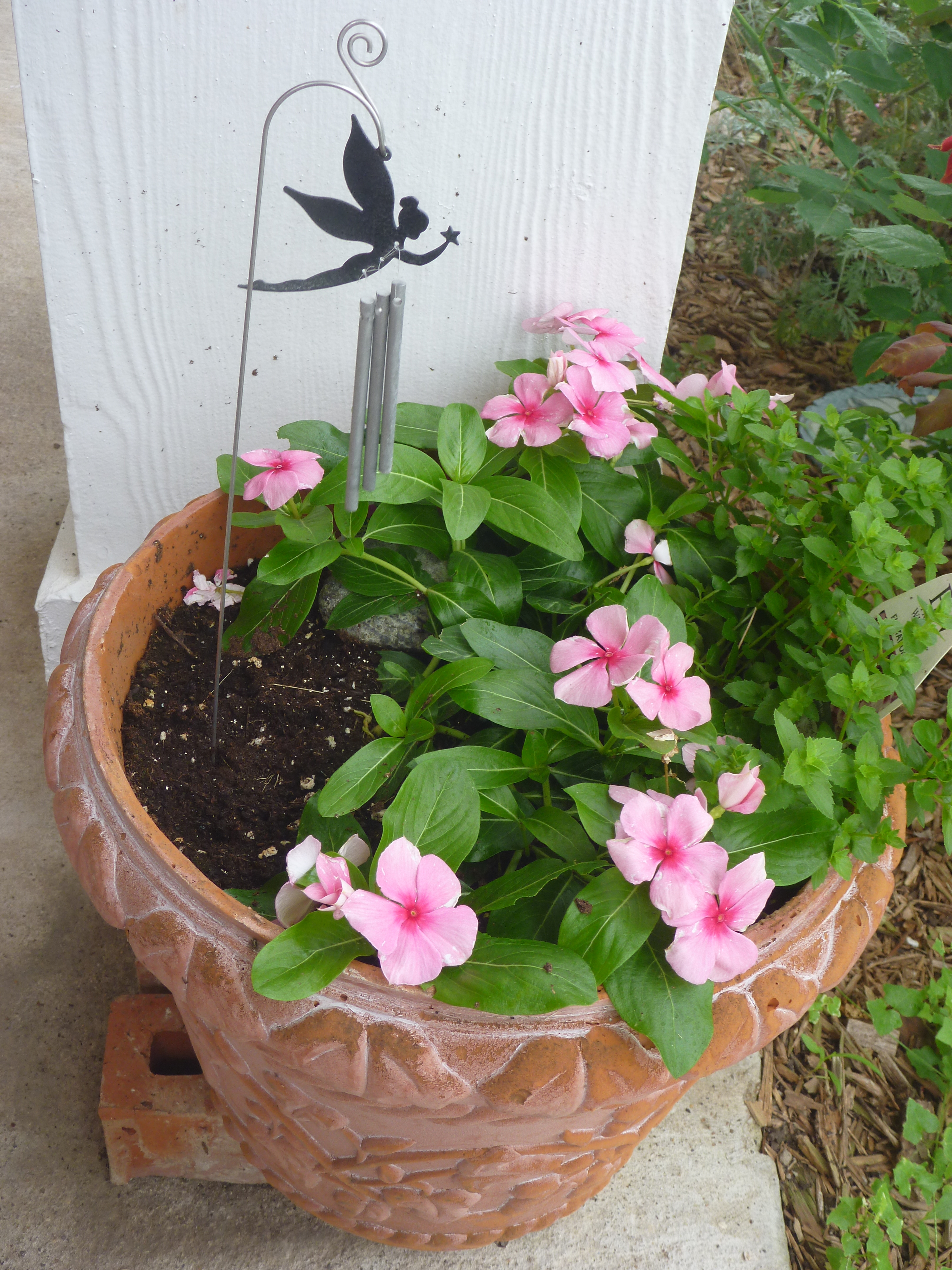 Supertunias! Not all petunias are hardy enough to withstand Texas heat, but Supertunias are! I’m in love with the pale pink “silverberry” Supertunia! I’ve also planted a dark pink variety.