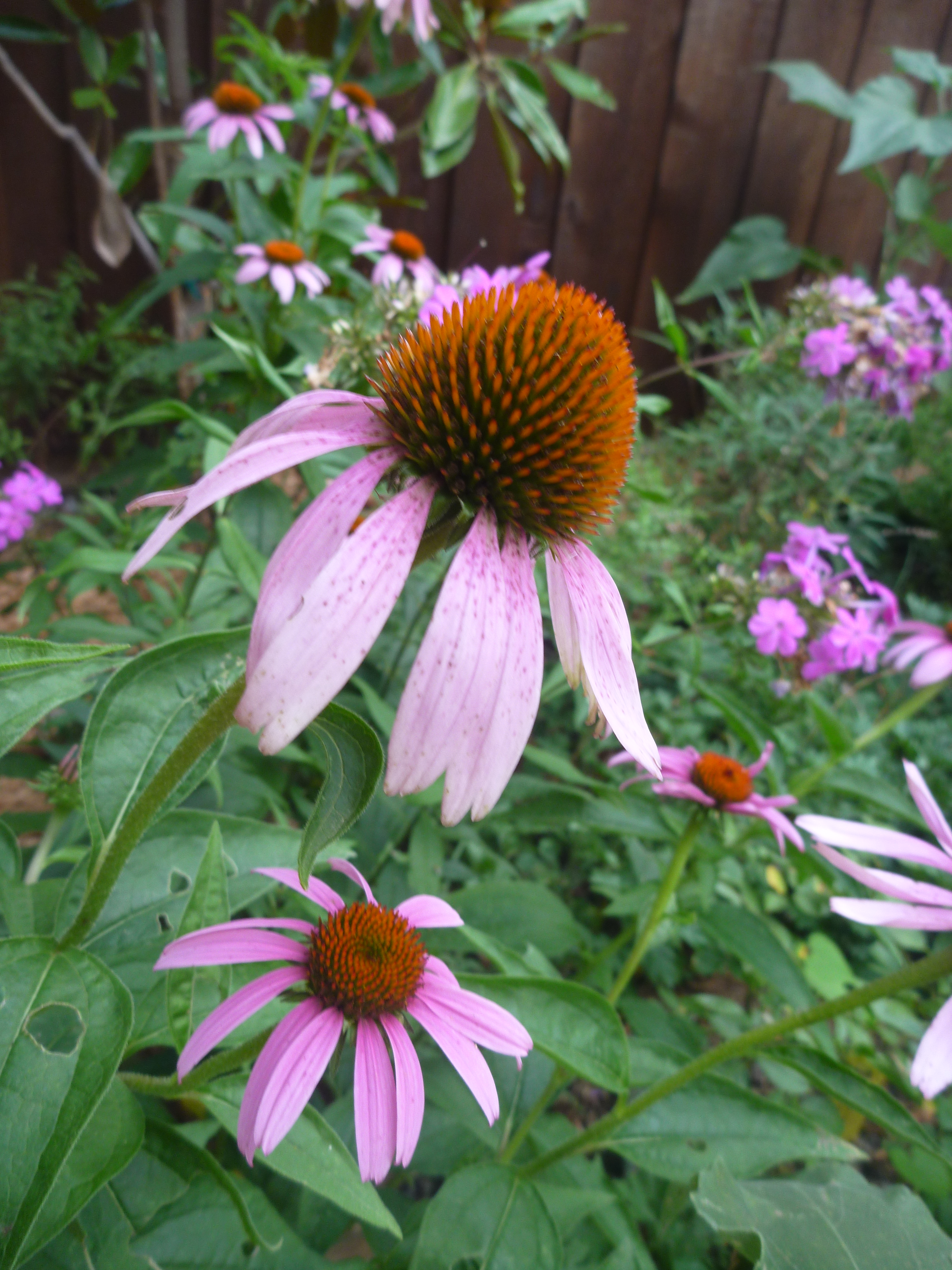 Summer Phlox ‘John Fanick’ – This plant gets the most attention from summer visitors to my garden. Its pompoms cheer on the summer heat. You can see the tufts of white and lavender from the road.