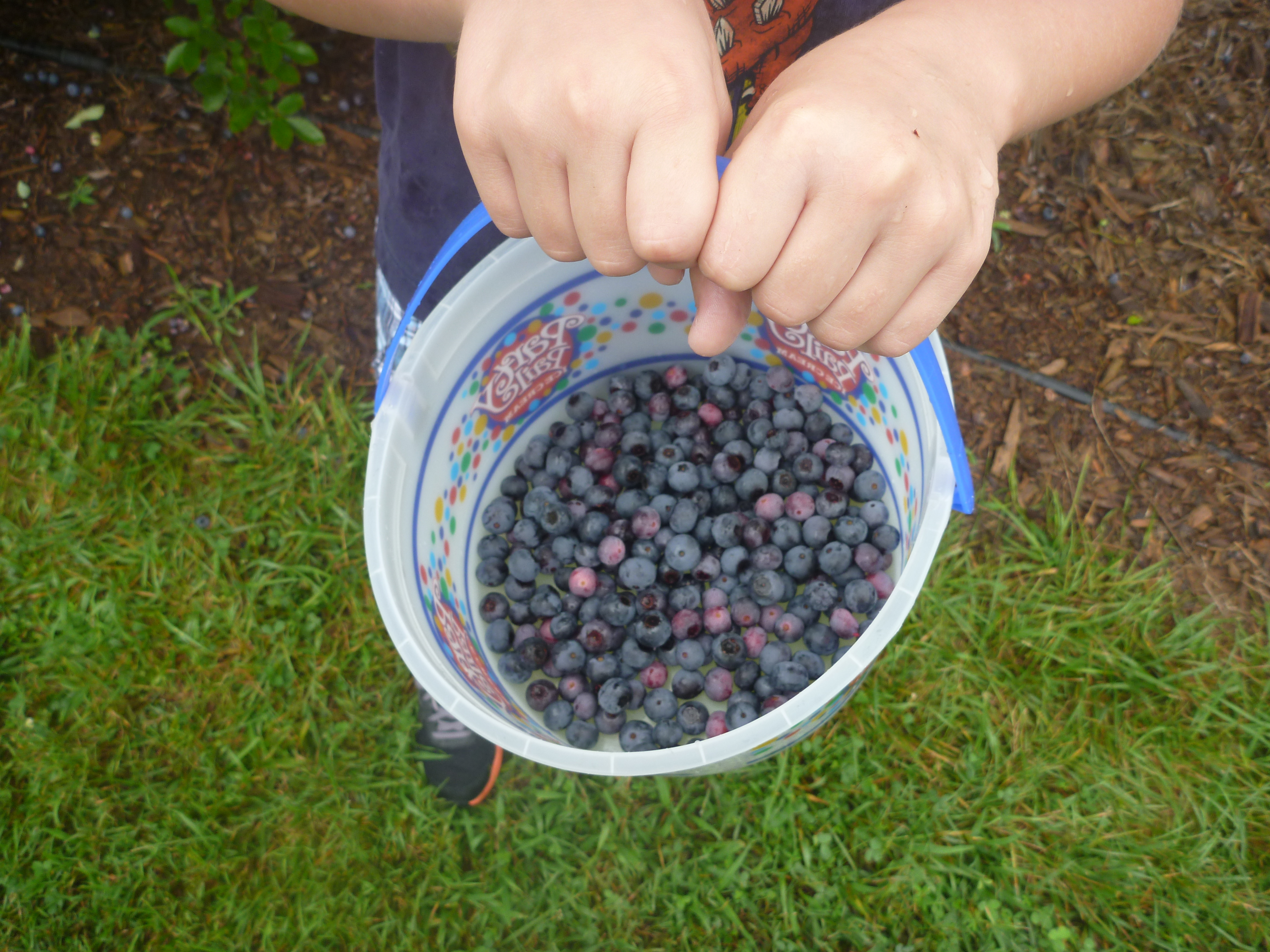 My boys’ grandparents picked berries alongside them. My husband picked. Aunt Bee and Uncle J picked. Little One ran through the green paths the berry bushes made.