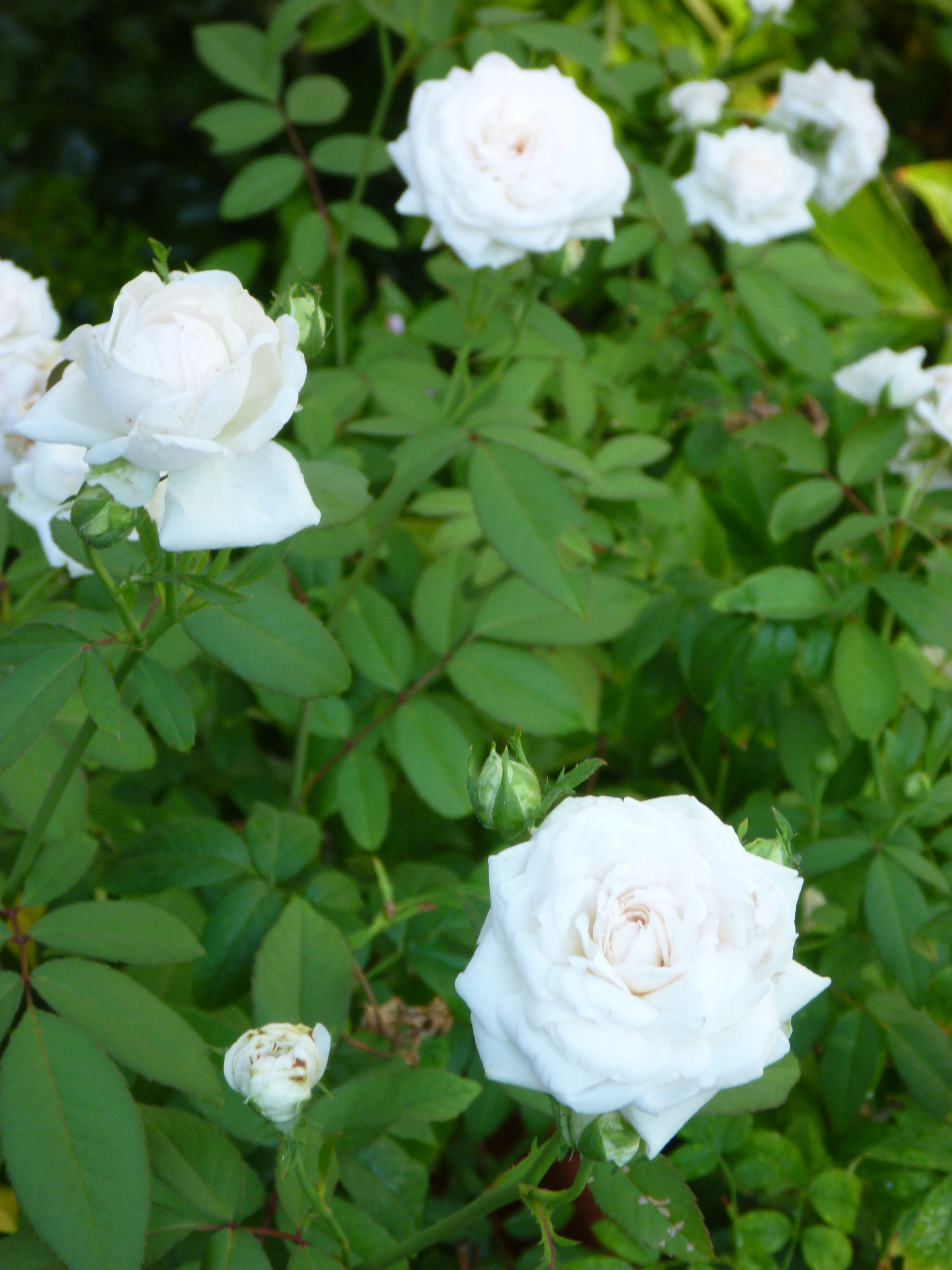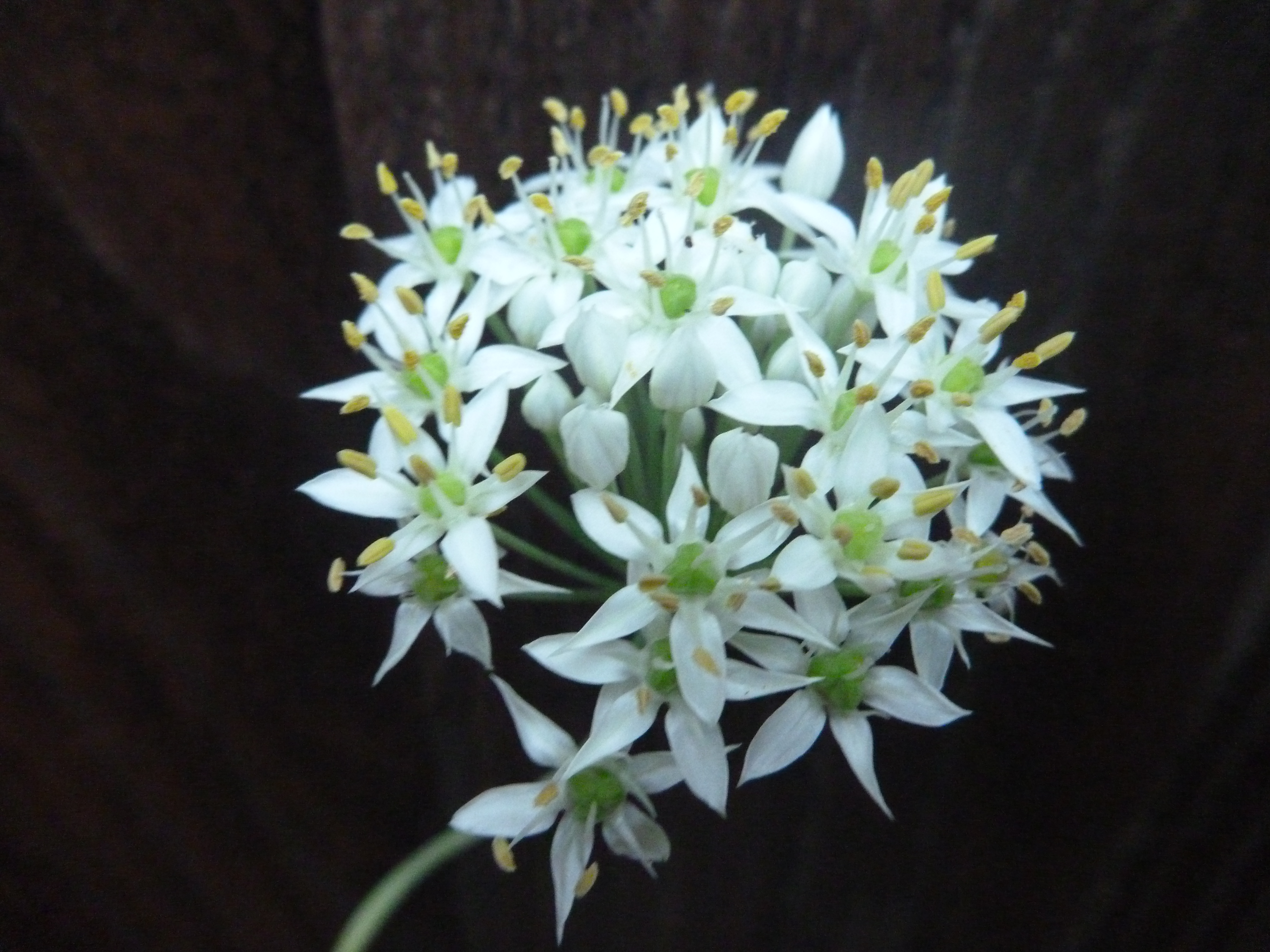 Garlic chives: I’ve had these in the ground for years, but this spring I pulled out an old rose that had been shading them. Warm sunlight upon them has produced these intricate globes.
